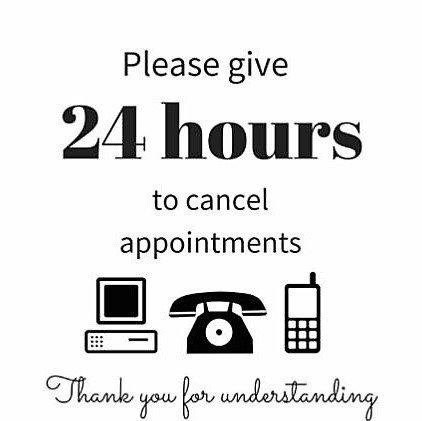 Appointments must be cancelled at least 24 hours before the scheduled service time.